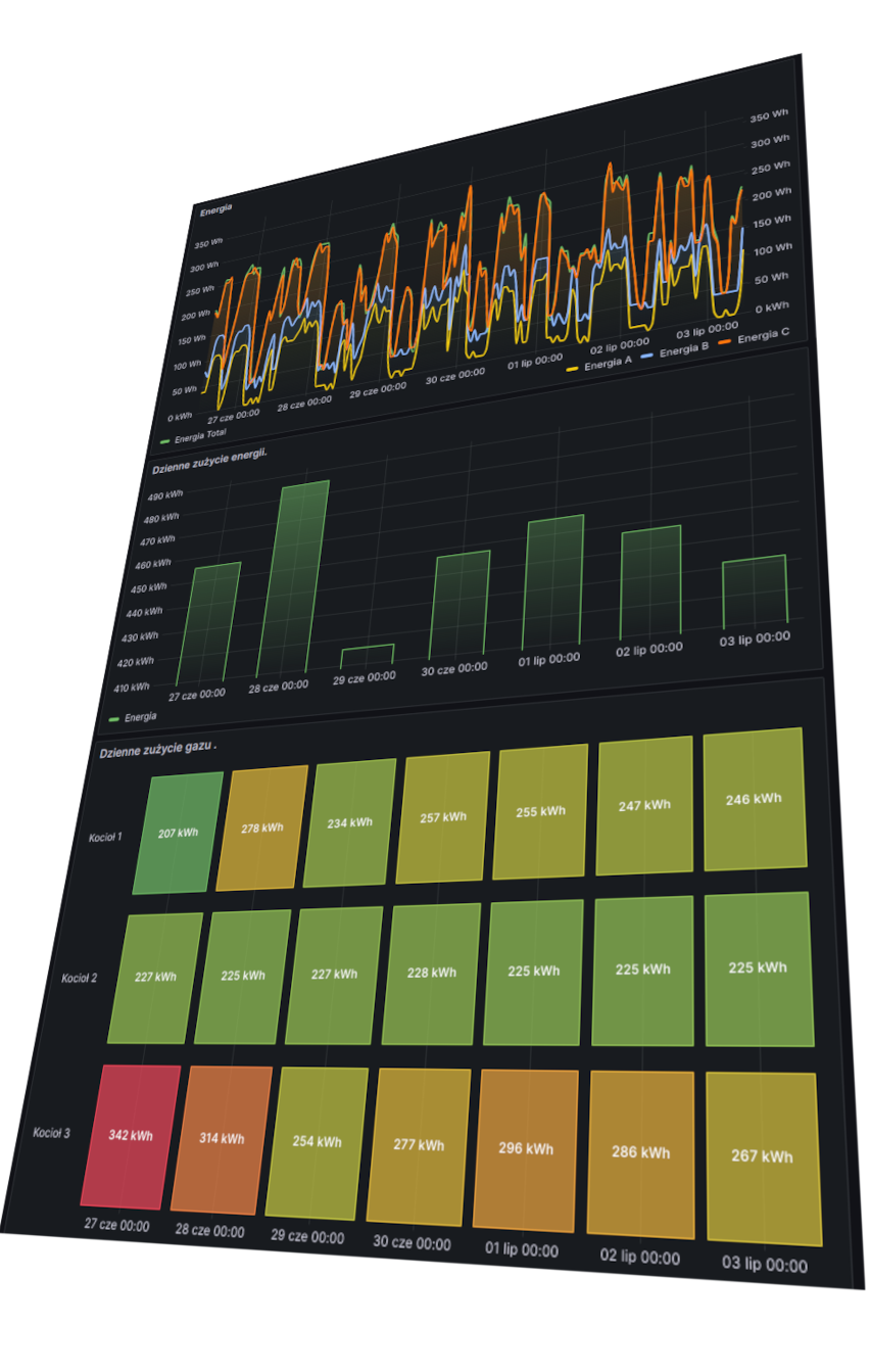Nasz system posiada szerokie zastosowania i chcąc w pełni oddać jego możliwości należało by użyć zwrotu "sky is the limit". Począwszy od dużej ilości graficznego przedstawienia danych a kończywszy na skomplikowanych działaniach matematycznych. System współpracuje z licznikami energii elektrycznej, licznikami gazu, przepływomierzami pary, powietrza oraz przetwornikami ciśnienia, temperatury czy poziomu. Aby zaznajomić się z jego możliwościami udostępniamy potencjalnym klientom wersję DEMO. Link do wersji demonstracyjnej znajduje się pasku menu naszej strony.